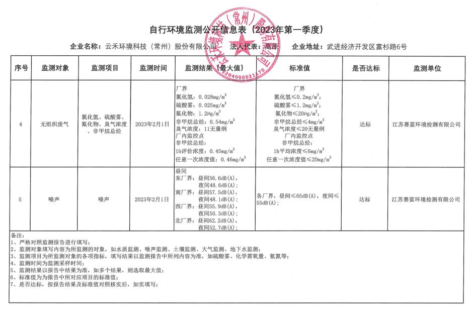 » 云禾环境2022年第四季度自行监测信息公示